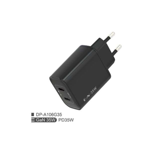 Ultra-kompakter 35W Dual-USB-C PD-Ladegerät mit US-Stecker, dieses Mobiltelefon-Ladegerät ist ideal für Apple und USB-C-Geräte.20V/1.8A) zum schnellen Aufladen von Telefon, MacBook Air oder iPad. Wenn beide Ports verwendet werden, bietet die intelligente Stromteilung bis zu 20W + 15W (z. B. C1: 9V / 2.22A, C2: 5V / 3A).5 mm kleiner als die meisten 20W-LadegeräteEnergieeffizient, sicher und kompatibel mit einer Vielzahl von Smartphones, Tablets und Laptops.